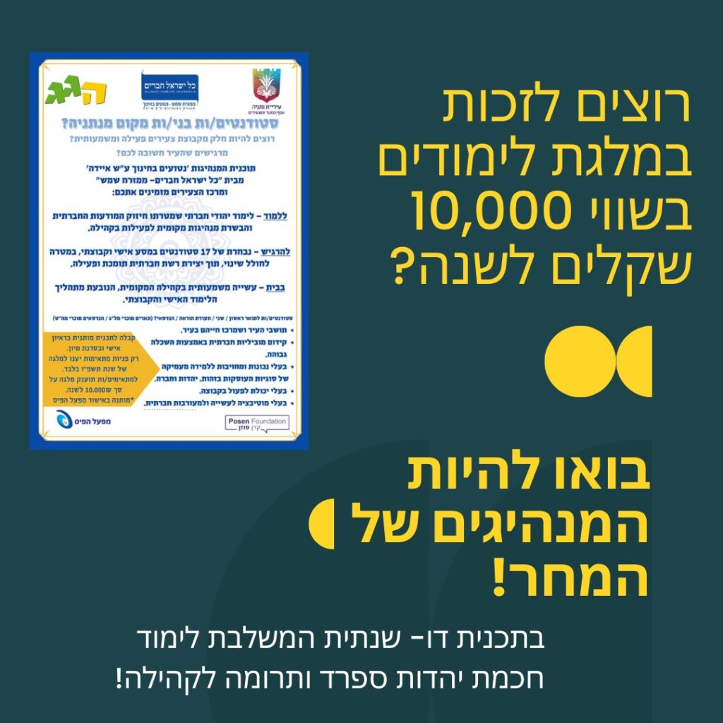 מעוניינים בעשייה חינוכית וקהילתית*סטודנטים/ות לתואר ראשון / שני / תעודת הוראה / הנדסאי (תארים מוכרי מל״ג / הנדסאים מוכרי מה״ט)